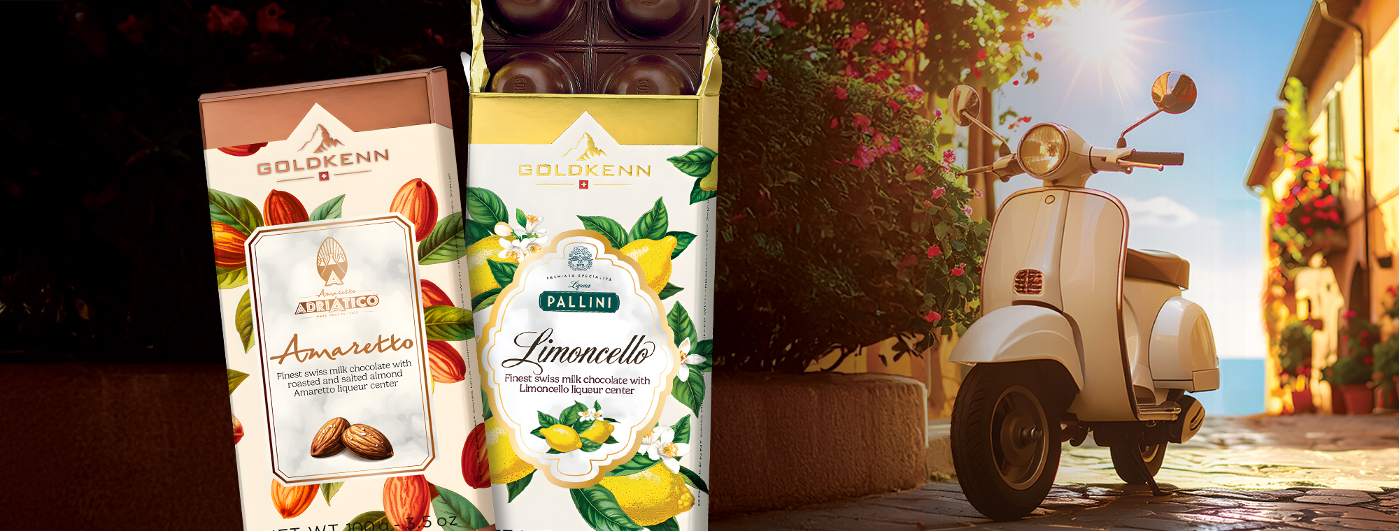 Since 1985, Goldkenn has built up its expertise by developing Swiss chocolate recipes in partnership with internationally renowned distilleries. The LIQUEUR collection offers a wide range of recipes for adults and chocolate connoisseurs, combining its premium Swiss chocolate with famous spirits brands such as Jack Daniel’s, Cointreau, Rémy Martin, Malibu, The Botanist, Amarula and many others.