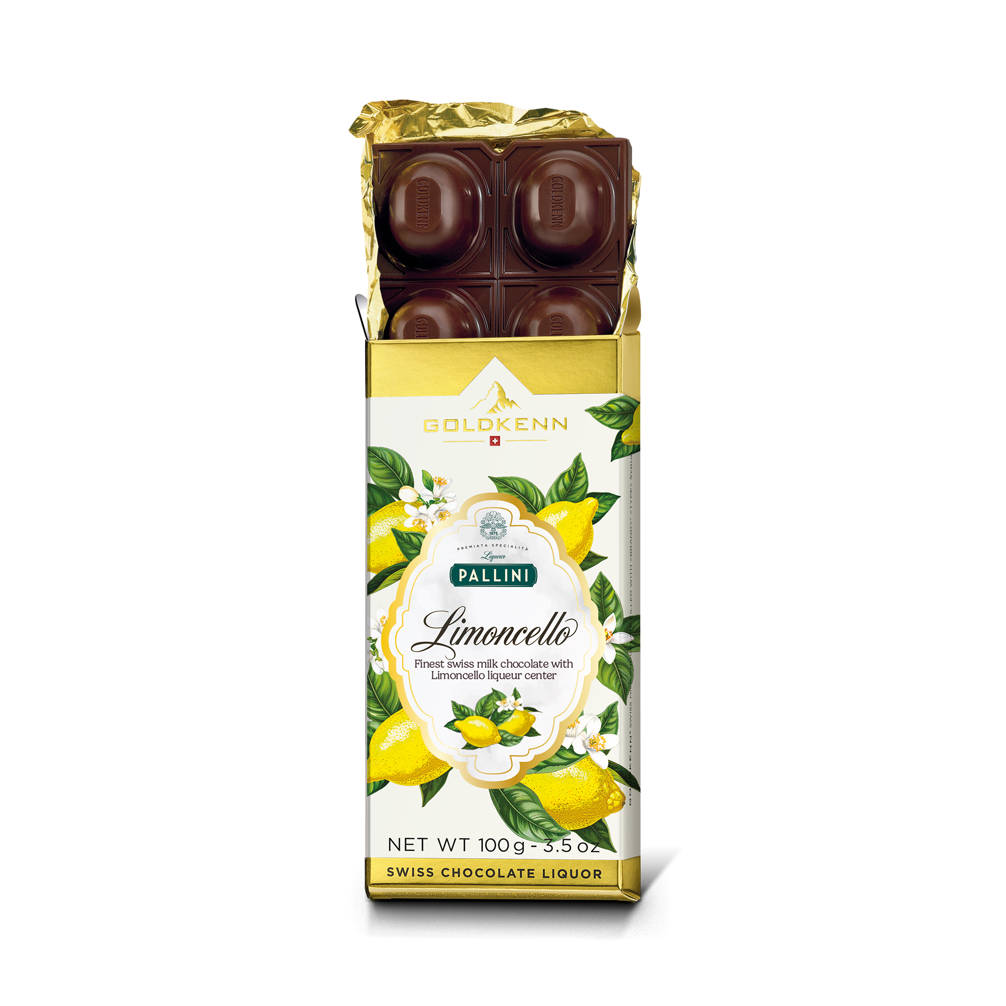 Une création alliant le chocolat suisse onctueux et cœur à la liqueur de Limoncello Pallini, élaborée à partir des célèbres citrons d’Amalfi.